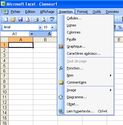 Figure 1 : Le menu Insertion développé.