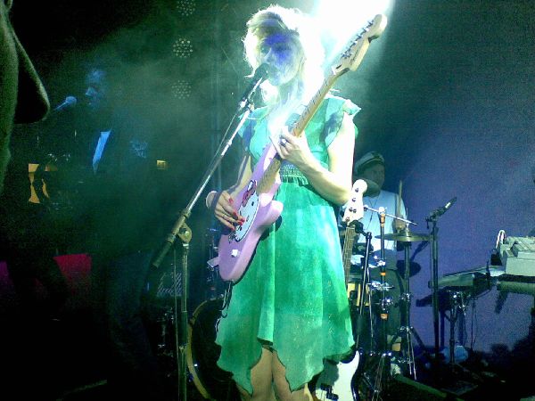 Je ne reviendrais pas sur le concert (je suis aussi bon en critique musicale que maçon), mais j’en profite pour poster deux photos d’elle et de sa guitare Hello Kitty.